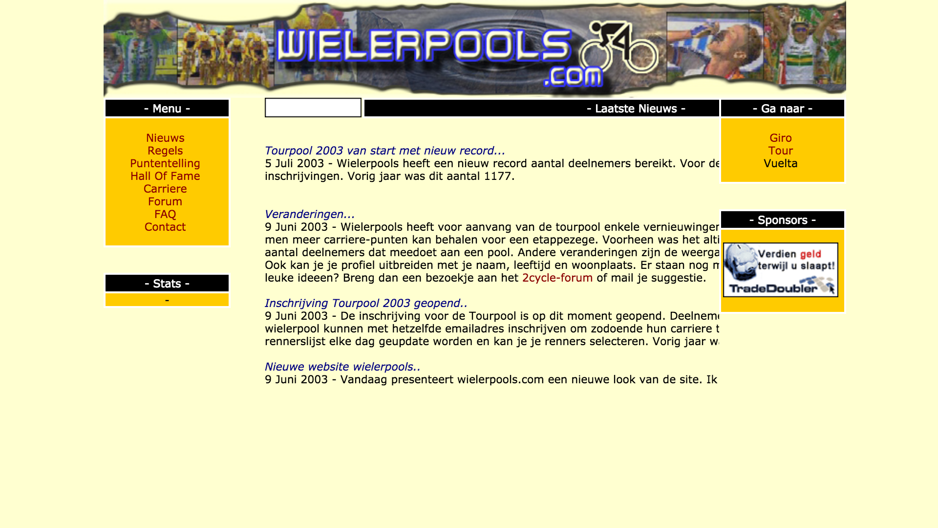 Op onderstaande afbeeldingen is te zien hoe we van Wielerpools naar Sportpools, van wielrennen naar wielrennen én tennis, van Jan Ullrich naar Johnny Hoogerland en van oranje, blauw, oranje, blauw en uiteindelijk naar zwart zijn gegaan.