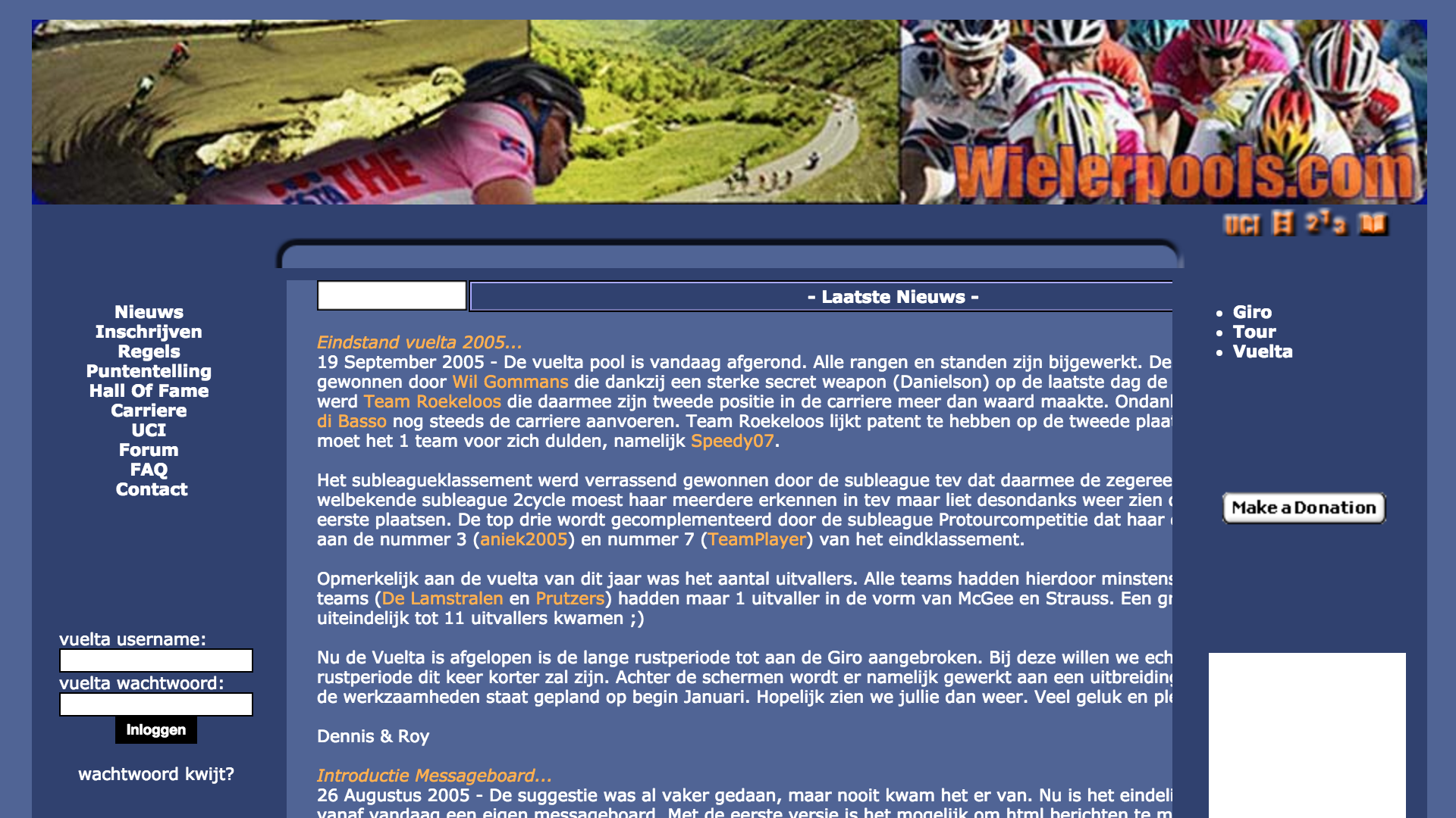 De vaak erg grote computer met beeldscherm als een toeter draaide op Windows 95 of 98. Iets wat destijds begon als een wielerpool op Excel-sheets is inmiddels uitgegroeid tot een levendig en groeiend platform voor wieler- en tennisfanaten. Je kunt het met recht een uit de hand gelopen hobby noemen. En we zijn enorm trots op deze hobby.